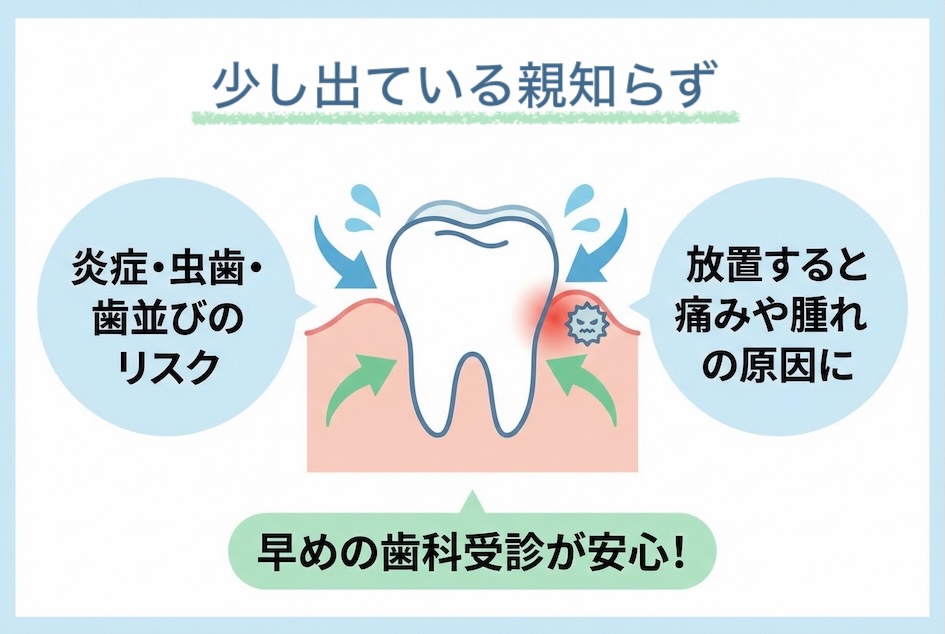 「親知らずが少しだけ顔を出しているけれど、特に痛みもないし、そのままにしておいても大丈夫だろうか?」