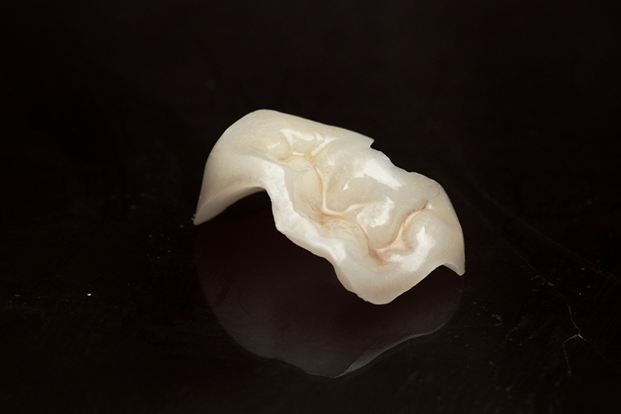 被せ物のフレームにジルコニアを用いることで強度を確保し、その上から何層も様々な色のオールセラミックを築盛していくことで、強度と色調の兼ね備えた被せ物の製作が可能となりました。色味・透明感ともに非常に優れ、「見た目も耐久性もこだわりたい」という方にお勧めです。